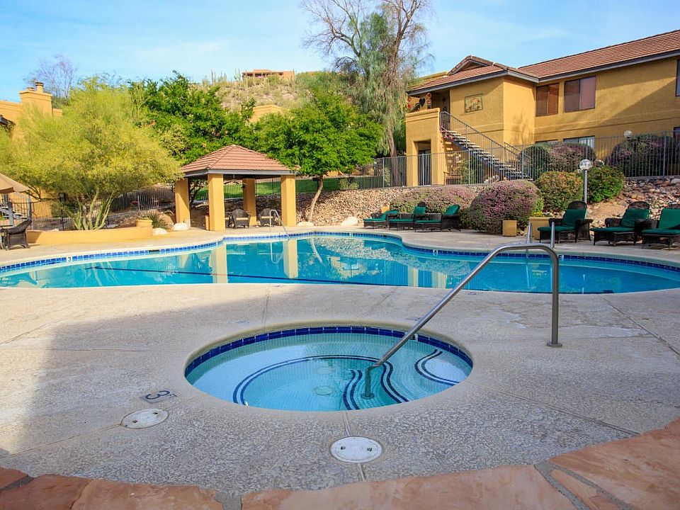 Beautiful Foothills condo with unobstructed mountain views! Three bedrooms and 2 baths with over 1100 square feet! Open great room floorplan with dining area and fireplace! Updated kitchen with cherry cabinets and granite countertops! Hunter ceiling fans throughout! Patio offers storage and incredible mountain views! Lovely gated community with heated pool, spa and exercise room! HOA includes water, sewer, trash services, exterior and roof maintenance, beautiful landscaping, covered parking, security and exterior insurance. Conveniently located close to golf, tennis and hiking! Ventana Canyon shops and restaurants only one mile away and Sabino Canyon only two miles away! Catalina Foothills schools! Call today for your private showing!