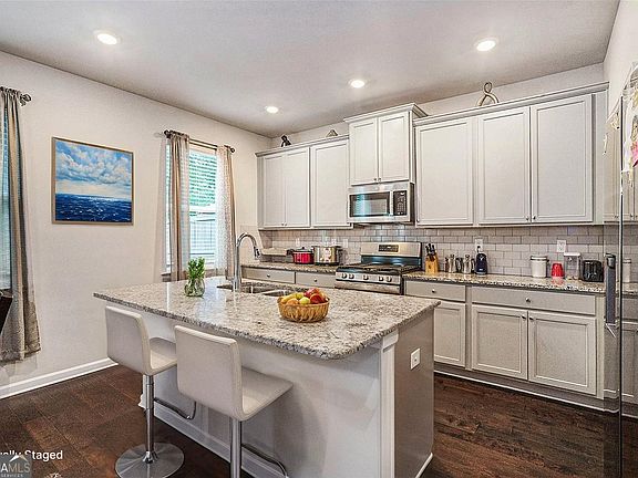 Welcome to this elegant 4-bedroom, 2.5-bath traditional home in the sought-after Stonecrest community! The Clifton floorplan by Rockhaven Homes offers a beautifully designed living space. Enjoy 9-ft ceilings and luxury vinyl flooring throughout the open-concept main level, a formal dining room with crown molding, and a chef's kitchen featuring 42" gray cabinetry, granite countertops, subway tile backsplash, a massive island, and stainless steel appliances. The oversized owner's suite includes vaulted ceilings, a huge walk-in closet, and a spa-inspired bath with a separate tub and shower. Spacious secondary bedrooms also feature walk-in closets. Nestled on a 0.15-acre lot with a charming brick front and covered entry porch, this home is just minutes from Arabia Mountain, parks, trails, and Stonecrest Mall. Don't miss your chance to own this beauty!