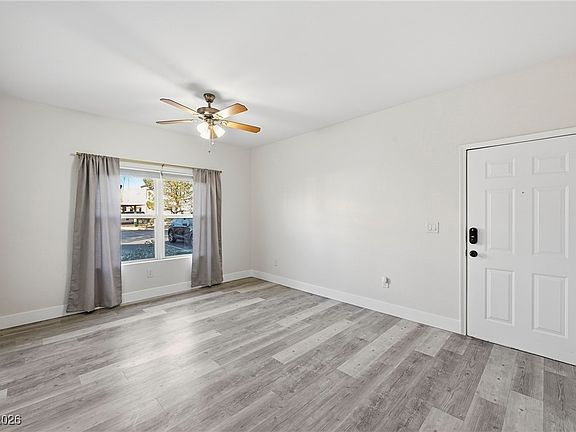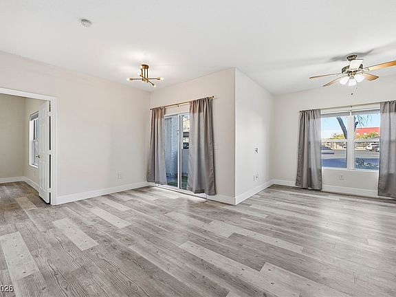 Turn-key and freshly painted, this highly upgraded 2-bedroom condo offers modern comfort and unbeatable convenience near the airport, major 215 freeway, shopping-Arroyo shopping plaza, hospitals, schools, and just minutes from the Las Vegas Strip. Recent improvements include a Trane HVAC system (2024), Google energy-efficient thermostat, new toilets and sinks (2024), and a guest bath vanity with countertop (2025). The home features all-new 2024 appliances—refrigerator, microwave, oven/range, dishwasher, garbage disposal, kitchen sink, and washer/dryer combo—along with new interior doors, custom walk-in closet shelving, honeycomb cellular blinds, and a smart keypad deadbolt. A private one-car garage completes this truly move-in-ready home.