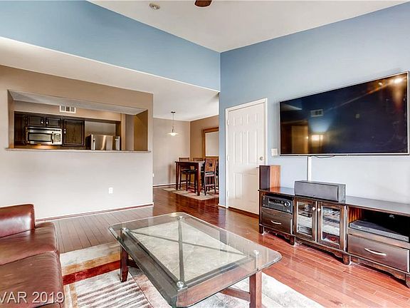 This cozy home is the one! You'll be greeted by vaulted ceilings, ceramic tile, and real wood floors. Your kitchen features recessed lighting and stainless steel fridge, stove, microwave, and sink. Upgraded 6-panel doors throughout. The tiled balcony overlooks the park. Enjoy your community pool, elegant rec center, and putting green. Within 3 miles of 7 parks, 2 golf courses, a water park, and tons of premium shopping and restaurants. Come see!