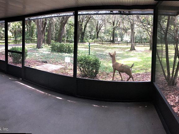 Rare find on 2.84 acres of country living but within minutes of Oakleaf Town Center shopping and restaurants. Sip your coffee and enjoy the natural beauty and majestic oaks from your front or back screened porches. Separate detached garage/workshop with two attached carports, large storage shed, and another separate covered parking area (for a total of 6 covered parking spaces) Stroll from covered parking along the brick pavers to the back porch. Plenty of room for your rv, boat, golf cart. The unique stone wall fireplace located in the living room is sure to delight you on those chilly winter nights. The inside laundry room offers plenty of shelving for storage. Back of this property extends beyond the wooded area and the best access is the path to the left of the wooded area.