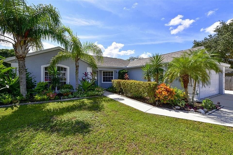 Your Florida Pool Home is ready and waiting for you! This charmer has been tastefully updated and is on an impressive corner lot with a fenced backyard. The home includes 3/4 bedrooms, 2 baths (split plan) with an open bright floor plan, vaulted ceilings, crown molding PLUS the 2-car garage has been converted to a perfectly finished AC space making this home 440' sq feet larger than the tax rolls indicate (1867' under air!!!). This fabulous Bonus Room (4th bedroom perhaps?) includes hardwood floors, a closet, plus crown molding. The flooring is a combination of tile, laminate, and wood - no carpet here! Right off the kitchen is additional storage space and a separate laundry room. Step outside and fall in love with the BIG pool (28' x 12') complete with an above ground hot tub and an enormous covered patio. The over-size lot has a fenced in backyard with not one but TWO storage sheds and a garden that's good for the soul. Here you will find mature tropical plants that butterflies love and a delicious lemon tree (baby lime too!). The exterior was painted/pressure cleaned in 2020, the interior was painted as well, the 30 year dimensional asphalt shingle roof is only 4 years old plus there's more good news! The 2017 AC is serviced regularly, the water heater was replaced in 2017, the washing machine is 2 years old, the dishwasher is only 3 years old, the toilets were just replaced and there is a home security system (comcast)! Need to park your boat? There's an area just for that as well. The sparkling blue pool and pool cage was installed in 2003. The location is just minutes from I-75, shopping, restaurants, and only 11.4 miles from the world famous sandy white beaches of Siesta Key. Great Price, Great Home! Better see it fast or this Paradise Pool Home will be like Florida's fabulous sunsets- only here for a moment!