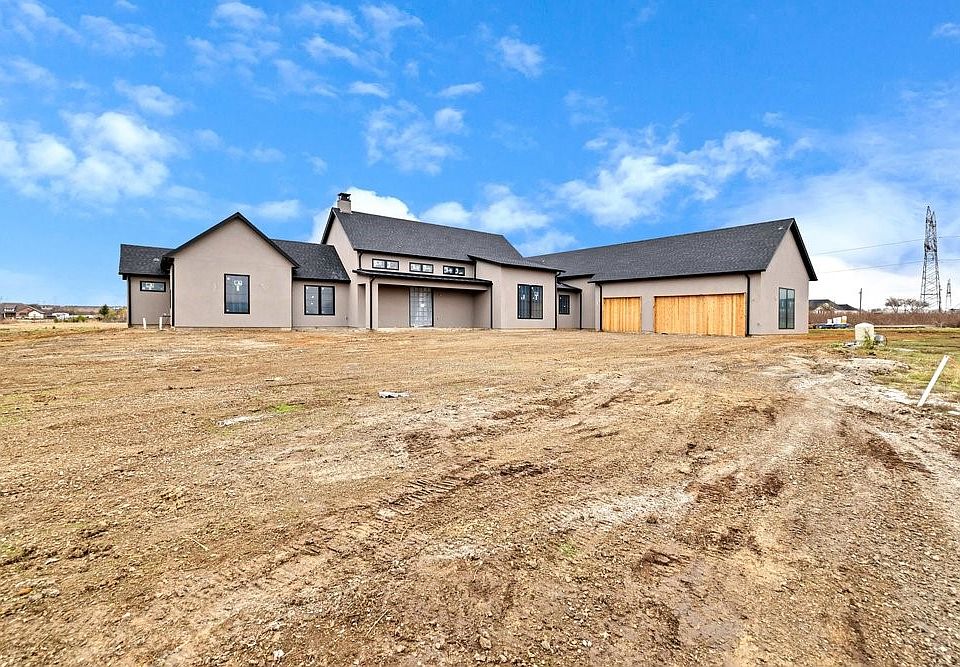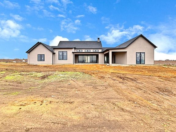 Experience the pinnacle of contemporary design in this new construction, custom-built modern stucco home offering approximately 4,900 sq ft of superior craftsmanship and refined elegance. Thoughtfully designed with clean architectural lines, expansive living spaces, and the highest level of finish-out, this property delivers a lifestyle of luxury. A dramatic single-axle pivot front door sets the tone as you enter a light-filled interior highlighted by soaring ceilings and an impressive huge sliding glass wall that creates a seamless indoor–outdoor connection. Every inch of the home showcases premium, fully custom finish-outs—designer lighting, millwork, fixtures, cabinetry, and architectural details that elevate each space. This exceptional residence features 4 spacious bedrooms, each with its own en-suite bath, plus a total of 5.5 bathrooms crafted with high-end materials. The chef’s kitchen serves as a focal point, boasting custom cabinetry, luxury stone selections, and a layout designed for both everyday living and upscale entertaining. Upstairs, enjoy a dedicated movie theater along with a generous bonus room featuring a full bath, perfect for a private guest suite, game room, or home studio. Situated on 2.5 acres in the heart of Krum this home offers a rare blend of modern luxury and wide-open space—an ideal retreat with room to breathe, entertain, and create. An exceptional statement of modern living. A masterpiece of custom construction. Welcome home.