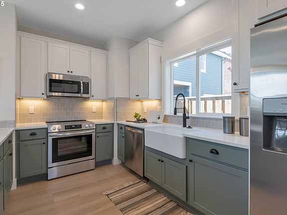 Go slow when visiting this unique and delightful eight-unit development. Portland Houseworks, always top quality, has this time created a truly exceptional living environment. Featuring one, two, and three-bedroom units, with no two units the same, this project will pleasantly surprise you in every way. Bright and sunny, meticulously designed and executed, there is nothing on the market like this in all of Eastside Portland. The inspired site planning, playful color schemes, thoughtful floor plans, lovely patios, distinctive siding specs, and beautiful craftsman finishes will blow you away. Exceptional attention to detail is everywhere in evidence: attractive tiling, oversized farmhouse style kitchen sinks, abundant counter space including a generously sized kitchen peninsula and eating bar, shiplap accent walls, vaulted master bedrooms, and stainless appliances (including side by side washer / dryer) will grab your attention like none other. Again, no two units are alike; come select your favorite before it’s gone.