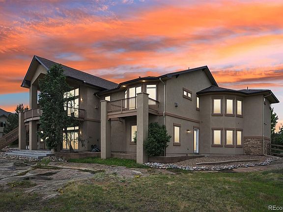 Fantastic opportunity to own this Custom built Ranch in the highly desirable Castlewood Ranch Estates where you'll enjoy breathtaking views of Castlewood Canyon & beyond. The natural beauty of the area w its stunning rock formations, panoramic vistas & wildlife, creates a serene & picturesque environment. Perfectly situated adjacent to Open Space on a spacious 1 acre with peaceful surroundings provides a sense of tranquility & privacy. Offering 4 beds, 4.5 baths, finished walk-out, oversized 4 car attached garage, has a masterful design, unique architectural features, an open concept floorplan, boasts high-quality construction & premium finishes. Features hardwood floors, granite countertops, custom cabinetry adding elegance & sophistication. The Great Room showcases floor to ceiling windows flooding it with light & capturing exceptional views. There's a gas fireplace & glass sliders lead to a covered deck with lovely vista. Butler's pantry leads from an Elegant Dining Room to the Gourmet Kitchen complete with an island, ss appliances & walk-in pantry. Main level Office. Spacious Primary Suite has a coffee bar, walk-in closet, glass sliders accesses a private balcony. Elegant 5-piece bath w jetted soaking tub. 2 more main level beds have private en suite baths. 4th bed & full bath is in the walk-out. Impressive walk-out is boasts a premier Library area, Family room has floor to ceiling stone stacked fireplace, patio access. Professionally installed Theatre with raised seating. Enormous Rec Room offers versatility whether you're looking for more entertaining spaces or self-contained living areas. Expansive outdoor living spaces: decks, patios, lovely landscaping, fully fenced yard, all provides opportunities for relaxing & entertaining. Lovely community has trails, parks, 159 acres of open space. Secluded feel yet conveniently close to downtown Castle Rock. Offering the best of both worlds: peaceful retreat & easy access to urban amenities. See virtual 3-D tour.