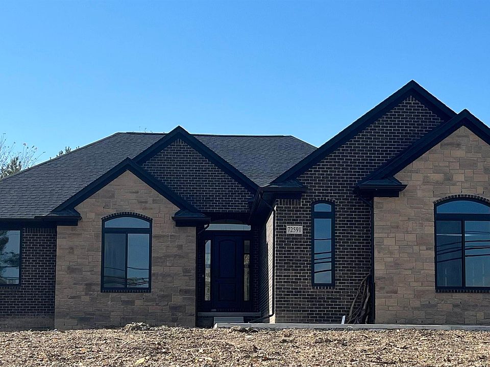 This beautiful 1 story, custom stone and brick home showcases cathedral ceilings, Antares quartzite fireplace w/ hand-hewn wood mantel, white oak flooring, LaFata cabinetry and quartzite counter tops throughout. Other features include a full basement and 3 car garage. This home sits on 1.4 acre wooded lot, providing plenty of space to create your dream landscaping and outdoor retreat.