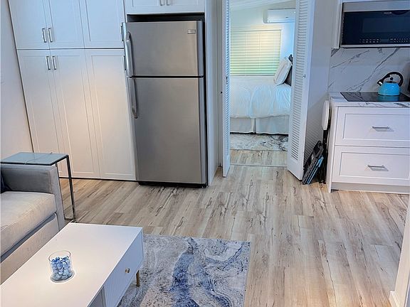 The unit features a brand-new kitchen equipped with an electric stove, microwave, toaster, air fryer, and a specialty espresso machine ideal for everyday cooking or entertaining. The home also includes a high-quality water filtration and softener system for added comfort.