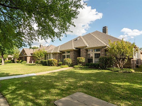 Single Story North Facing Valley Ranch Home in Coppell ISD! FOR FULL VIDEO TOUR SEARCH YOUTUBE 726 CIMARRON TRAIL. Freshly painted throughout you'll be impressed right at the entry! Spacious dining with builtin cabinet has access to kitchen for easy entertaining. Sun filled kitchen is accented with granite slab counters, subway tile backsplash, stainless steel appliances & gas cooktop. Master bedroom retreat w vaulted ceilings opens to updated bath & two walk-in closets. Two living areas, wood beamed ceilings, built-in bookcases, see-through fireplace & wet-bar compliment this home. PLUS 3 guest bedrooms & attractively updated guest bath sweeten the deal! Large covered patio opens to peaceful grassy backyard.