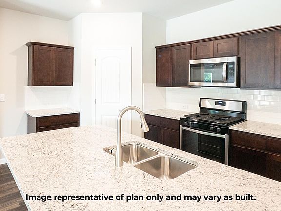 The Denton is a fabulous 3 bedroom, 2 bath home. Two guest bedrooms share access to a full bathroom off the home’s entryway. The kitchen island opens into the living and dining areas with natural light spilling in from the windows from the patio. The kitchen features stainless appliance package including gas range, and a corner pantry. Primary bath has double vanities and separate shower with garden soaking tub to relax away the day, and the walk in closet is a generous size. Luxury vinyl plank floors are in all main living areas and the main bedroom. 9 ft ceilings throughout this home. Post-tension slab with 10 year structural warranty and Smart Home automation included; Qolsys panel, WiFi thermostat, WiFi enabled deadbolt lock, garage door opener, doorbell camera, and Alexa Dot for voice control - or you can control from your smart phone. This home is a must see! This is a family friendly community that features access to a large playground and picnic pavilion next to the amazing swimming pool with a fun splash area for the kids. Celebrate the return of neighborhood living with your family in Bellacosa! Swim in the community pool and splash pad, picnic under the shade of the open-air pavilion