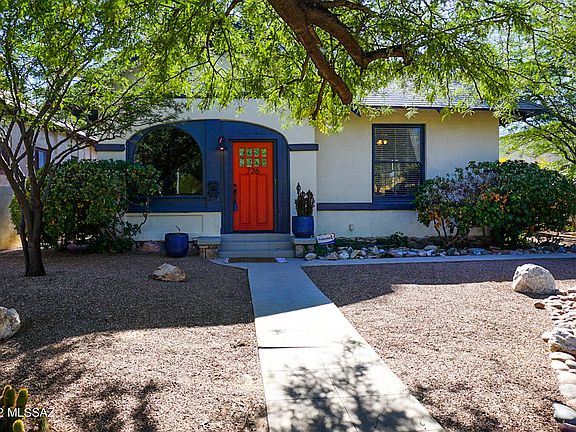 Absolutely charming historic West University craftsman style bungalow. One half block from the University of Arizona. This property has been a labor of love and it certainly shows. New iron fencing off alley entrance with drive through gate, includes remote openers. Drive into a large parking area that can park up to 8 vehicles in a secure area. Huge double lot with endless possibilities. New Wood flooring. New interior and exterior paint. New A/C 2018. Newer appliances that are included in the sale. Compressed paper counter tops in kitchen. Over abundance of storage space. Backyard is a private oasis with covered patio and Ramada that are all brick paved and include a great amount of outdoor hanging lights. Very nice curb appeal, enter through the red front door and be amazed!