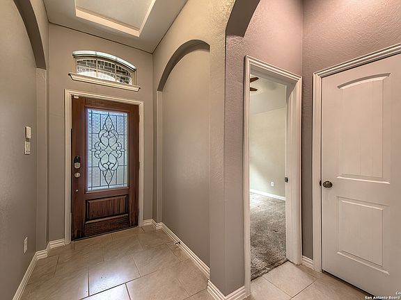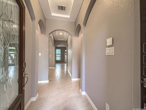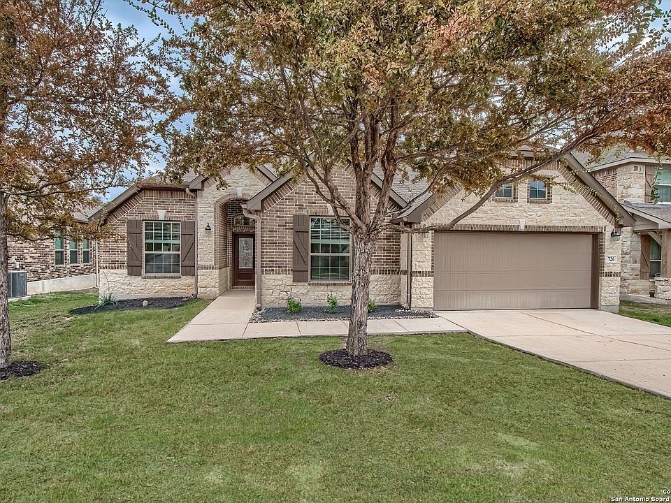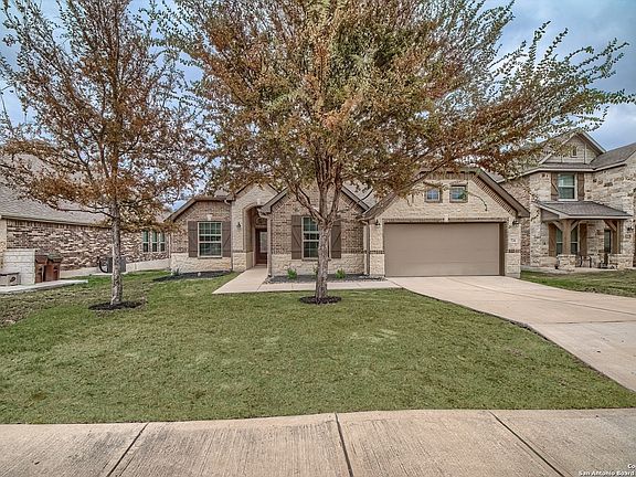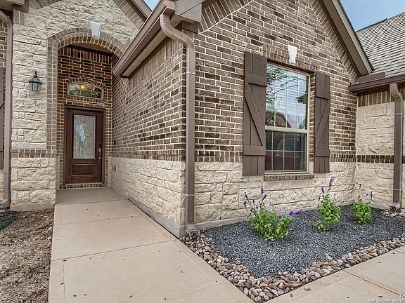 Welcome to 726 Firenze Ave, a beautifully maintained four bedroom home in the gated Potranco Run community. This inviting one story layout offers a spacious open floor plan with a bright living area, dedicated dining space and a modern kitchen with granite counters, stainless steel appliances, rich cabinetry and natural gas cooking. The home also features natural gas heating and an electric fireplace for added comfort and style. The primary suite is tucked privately at the back of the home and includes a walk in closet, dual vanity, soaking tub and separate shower. Three additional bedrooms at the front offer room for guests, an office or hobbies. Enjoy a covered patio overlooking a large fenced backyard with mature trees. The home includes full gutters, an irrigation system and a water softener for easy living. Potranco Run is a quiet gated community with quick access to Potranco Road, Highway 211, shopping, dining and Lackland AFB. The area also benefits from no city taxes. A move in ready home with upgrades, space and a desirable location in west San Antonio.