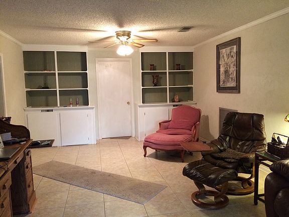 WATERFRONT PROPERTY. 4 bedroom, 3 bathroom with over 2000 square feet. The home features a kitchen with all appliances, a long kitchen counter and plenty of cabinets. There is a large brick fireplace in the dining area and the floor is brick pieces. There are 2 bedrooms and a full bath just off the dining area. The family room is spacious and features 2 built in bookcases and sliding glass doors. There is an adjoining guest bedroom with a full bathroom. The master bedroom is large with a nice closet and a full bath. You will LOVE the 1.11 acres on the water with a nice sized dock. The yard is lovely and has nice plush grass. Double carport and utility room, plus a spacious storage building. Grab your fishing pole!! Call to preview.