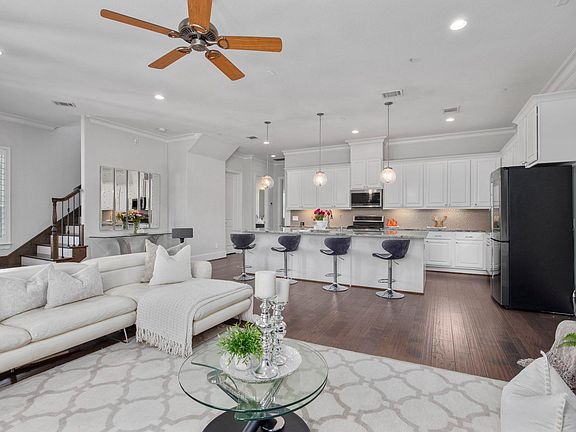 Waterfront living at its finest! Beautiful Lakefront home with modelhome like FINISHES & UPGRADES! Hardwood flooring! High ceilings w/ tall baseboards, doors, & crown-molding! GOURMET KITCHEN w/ QUARTZ countertops & HUGE BREAKFAST BAR ISLAND overlooking SPACIOUS LIVING AREA! Stainless-steel appliances & wine cooler! Soft-close cabinetry w/ under-mount lighting! Mosaic Tile backsplash! HUGE walk-in pantry. Primary Suite w/ His