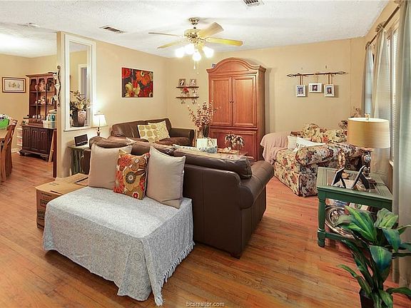 Are you looking for a home with a little character and charm? On a large lot with beautiful mature trees? A curvy brick walking path leads to the covered front porch and front door. Original oak wood floors are in the entry, living, dining and bedrooms. The kitchen and bathroom have been remodeled and updated. The kitchen features a counter height eating bar a breakfast nook and French doors that open to the sunroom.The sunroom located on the back of the home can be used as a second living area or playroom. The fenced backyard features brick patios and large shade trees. The roof was replaced in April 2020. There is a two car attached garage for your cars or playthings. This home is just off the beaten path with easy quick access to Texas A&M.