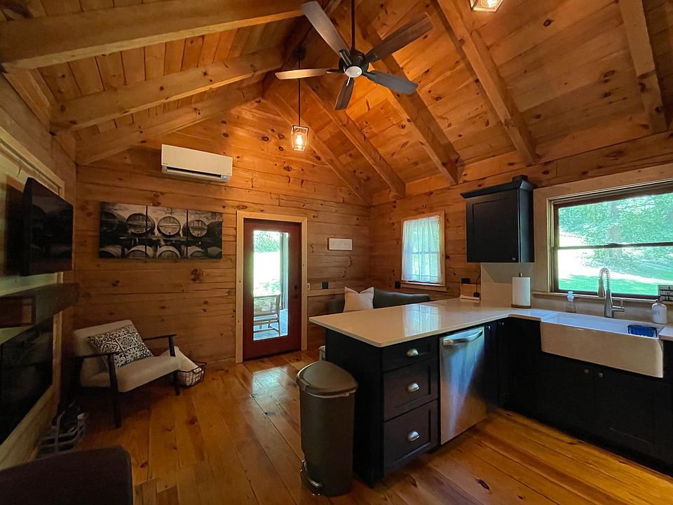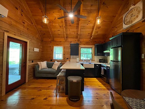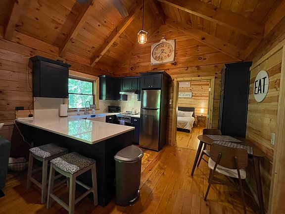 This adorable one bedroom cabin offers a peaceful place to relax or work. Tucked away on 9 acres, enjoy the peaceful sound of the creek while relaxing in the hot tub.