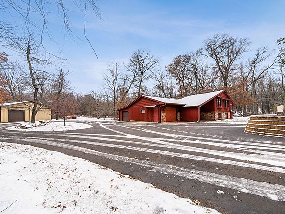 Welcome to this charming 3 bedroom, 3 bathroom home on 5 acres just outside Osceola, WI. First off, you will notice this homes' well maintained curb appeal with mature trees and asphalt driveway at the end of Maple Leaf Drive. Inside this split level home; the living areas are surrounded by the grand, brick hearth and fireplace with exposed beams and vaulted ceilings. Enjoy the eat-in kitchen and 3-season porch with easy access to the back patio. Downstairs you are welcomed by a cozy family room with another fireplace and more exposed beams. Bonus Room, large utility room, additional storage room and another large 3 season porch. Ample storage with a 2 car attached garage, storage room and additional side garage. Outside you are surrounded by a large yard filled with Maple, Oak and Pine trees on the secluded 5 acres. Property also hosts a 36'x54' Pole Shed with 3 large garage doors and outdoor lean-to storage. You're not going to want to miss this one! Call for a showing today.