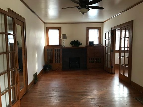 Spacious 3-4 Bedroom home with 2 car detached garage. Covered screened deck. Lot of character with original woodwork throughout. Wood Floors and French Doors. 1st floor features a large living room with built-ins on each side of decorative fireplace. Nice office or den with lots of windows. Formal dining room. Full bath with walk-in shower, stool, vanity and washer & dryer. 1st floor Bedroom. Nice oak kitchen with newer countertops and sink. 2nd floor features 2-3 more Bedrooms with wood floors and 2 walk-in closets. Partially fenced yard. Appliances stay but unwarranted. Taxes reflect no exemptions.
