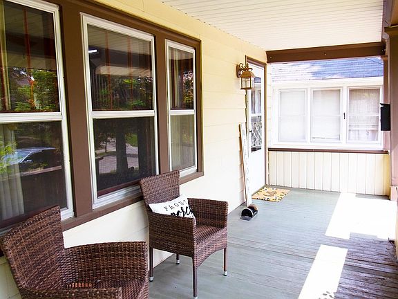 This classic bungalow has 2 bedrooms with ample closet space and a full bathroom with a clawfoot tub upstairs. The living room has built-ins and leads to a formal dining room. Hardwood floors throughout the house and original woodwork. From the cute vintage kitchen through the french doors, you'll bask in the sun on the huge deck in the fully fenced backyard. The basement has a finished 3/4 bathroom, space for storage and laundry facilities. Start your days drinking your coffee on the beautiful large front porch. Don't miss it!