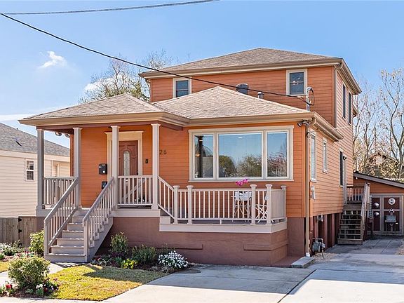 Like a warm hug, this SPACIOUS, CHARMING, ARTISTICALLY CRAFTED Arts and Craft style home welcomes you! PLUS THERE'S AN ADDITIONAL 511 SQ.FT BEAUTIFUL, FURNISHED GUEST QUARTERS - Great for multigenerational living, home office, etc., and it opens to a lush patio paradise and custom-designed yard with woodworker's artistic touches. In the main house, you'll love the open concept living, kitchen, dining areas, and a sunny kitchen with eat-in bar & breakfast nook. 1st level has a roomy bedroom with Murphy bed and full hall bath. Also on this level is an OFFICE/DEN or optional second bedroom= options!! Upstairs offers a GENEROUS PRIMARY SUITE WITH ATTACHED PRIVATE PORCH that overlooks the paradise below! Another bedroom, half bath plus laundry room complete the 2nd level conveniences! BONUS WORKSHOP with AC= possibilities! Easy stroll to Cafe Navarre, City Park, PJ's, and Delgado College. Hop on the interstate and you'll get ANYWHERE fast (Downtown, Airport, Uptown, Mid-City, Lakefront, etc.)! And in the best rated Flood Zone, X!