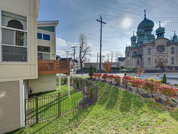 Beautiful, unique Tremont townhome! One of the most well designed, most upgraded units ever in Starkweather Place. So many attractive features and amenities at such an affordable monthly cost! This unit is called the "Entertainer's Special" because of the open floor plan on the main floor, the 2-story living room with a wall of windows overlooking beautiful St. Theodosius and one of the biggest decks in the development. The nighttime view of the church is amazing! These elements all make for a wonderful entertaining space or just a great place to live and enjoy the neighborhood. This end unit is one of only a few in the development with private, fenced, green space. In addition to the open floor plan, the main floor contains an attractive kitchen with custom cabinets, granite counters with a large breakfast bar and stainless appliances including a wine cooler. Spacious owners suite with attractively tiled full bath. The home features a second bedroom / full bathroom suite on the ground floor. Tax abatement, low monthly maintenance fee and low utility costs because of the extensive green building features all contribute to a very affordable monthly cost of homeownership. Across from local shops, cafes and the cathedral and just around the corner from Professor Avenue, this home is the perfect location to enjoy this amazing community.