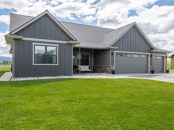 Welcome home to 726 Talons Way. Our latest offering boasts zero entry main level living in an area of high end homes. As you enter the property you are taken in by the wide, paved driveway that opens to an oversized 3 car garage and the gorgeous board and batten siding. The yard is expertly landscaped and manicured. The yard has underground sprinklers. Entering the home on the right there is a 4th bedroom that can be used for an office, study or library. To the left are two guest bedrooms and a large guest bath with double sinks and lots of storage. Moving down the entry hall the home opens into a large living area and kitchen. The exposed beams and circle sawn plank ceiling, as well as floor to ceiling gas fireplace immediately confirms no expense was spared building this home. Condition is immaculate. The kitchen includes a large island with overhang for stools and eating, as well as a large dining area, with windows everywhere. The kitchen has ample cabinetry and shelving. There is a half bath just past the kitchen before the large laundry room. Laundry connects to the master closet, which adds to the allure and functionality. Walk in closet is finished with shelving, drawers, and organizers. Moving into the master bedroom you’ll notice the bright airy feeling with ample space. The master has ensuite bathroom with heated floors that also boasts a nice soaking tub, walk in tile shower, dual separate vanities, and storage closet. Moving outside you'll notice the covered living area that is wired for a hot tub, nicely manicured back yard, rock garden and concrete sitting area, firepit, and some tall grass areas for your furry friends to air out. Call Jason Baker at 406-552-4443 or your real estate professional.