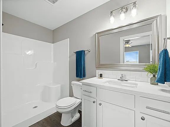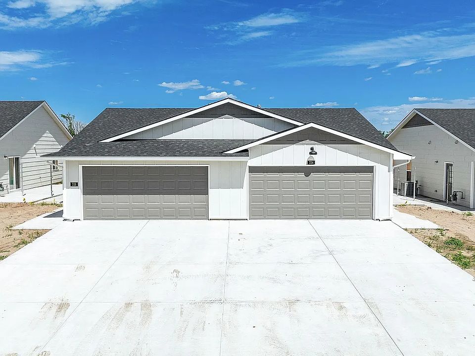 This brandnew 2024 construction home offers 3 bedrooms, 2 full bathrooms, and a spacious 2-car garage. Designed for convenience, it features a zero-entry layout with no stairs anywhere in the house. The home is loaded with custom touches, including quartz countertops, tile backsplash, new flooring, and neutral paint throughout. The open-concept design creates a welcoming space, with a living room that boasts an electric fireplace. The modern kitchen includes a large island with seating, a walk-in pantry, and stainless-steel appliances such as a stove, dishwasher, built-in microwave, and refrigerator. Additional storage is available with a hallway closet. Outside, you'll find a private, fenced backyard, a patio perfect for relaxing, and a sprinkler system to keep the yard lush, connected to a shared irrigation well