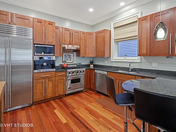 Click on 3D tour. Enjoy luxury living in this pristine Lincoln Park duplex down. Gourmet kitchen features granite countertops, stainless steel Sub Zero and Viking appliances, and built-in espresso machine! Open concept kitchen flows seamlessly into the large living room, with private balcony off living space perfect for entertaining. Luxury abounds throughout the home: crown molding, recessed lighting, and gleaming hardwood floors on the first floor. Lower level features large bedrooms with radiant heated floors! Master ensuite bathroom with dual vanity and shower/tub combo. Walk-in closet off the master bedroom. Large washer/dryer in unit. Unit comes with PRIVATE ROOFTOP RIGHTS over the garage - bring your patio plans! Incredible location steps from Trader Joe's, dining on Clark St, Diversey Brown line stop, and Wiggly Field Dog Park.