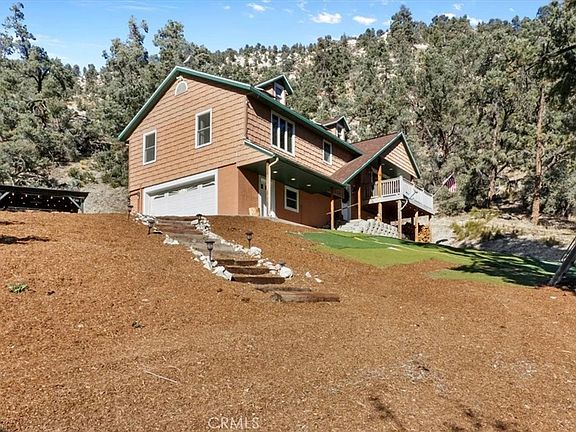 Welcome to 726 Woods Drive, an enchanting property nestled in the mountains of Frazier Park, offering seclusion on a sprawling 3.17-acre parcel designated for equestrian use. Meticulously crafted in 2003, this residence provides a warm and inviting retreat. As you approach, a well-maintained paved driveway guides you to a charming 3-bedroom, 3-bathroom home. The property showcases breathtaking views of the surrounding mountains, creating an awe-inspiring backdrop. Upon entering, the living room welcomes you with cathedral ceilings adorned with pine T&G paneling. A cozy wood-burning stove adds both charm and functionality to the space, while two decks provide a platform to savor panoramic views of the Frazier Mountains. The back deck features a convenient gas hook-up for a BBQ. Recessed lighting throughout the living area adds a modern touch. The kitchen, radiant with oak cabinets, is both practical and elegant. On the main level, two bedrooms and two newly updated bathrooms provide comfort and convenience. The master bedroom boasts an en-suite bathroom with sweeping views from every window and a custom-built walk-in closet with wood shelves. Descending to the lower level, you'll discover an expansive living area, accompanied by an adjacent bedroom. This versatile space can serve as two additional rooms or one generously sized room. A separate laundry room and third bathroom enhance functionality, and a valuable addition includes the convenience of under-stairs storage for efficient use of space. The property further impresses with a two-car garage, central AC, heating, and comprehensive surround sound connectivity throughout the entire home. Outdoors, a cascading waterfall create a serene ambiance, while a covered pergola, wired with speakers, lights, and a projector, provides an idyllic setting for movie nights under the stars. Multiple seating areas with fire pits offer opportunities for relaxation and outdoor gatherings. The property is also equipped with solar panels. Additional amenities include two sheds, a spacious a metal storage container, and an additional unit that can be used as a storage shed or turned into a cozy dwelling. A Jacuzzi adds to the luxurious outdoor experience, complemented by a chicken coop, play area, and a thrilling zip line in the front yard. Ample parking space and RV cleanout rounds out the impressive offerings of this property. Don't miss the opportunity to make this extraordinary home your own.