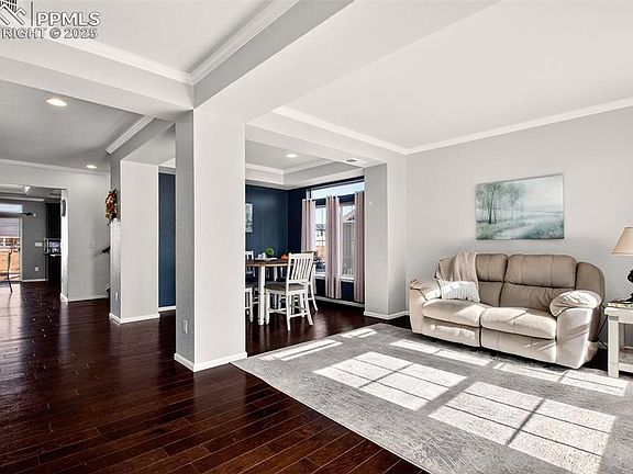 Welcome to your dream home nestled in the heart of Colorado Springs. This stunning home offers an expansive living space, custom-designed for both luxurious comfort and everyday family life. This well maintained home built in 2014 presents a unique blend of elegance and functionality that’s perfect for family living, especially for those seeking multigenerational options. Step inside to discover a warm and inviting atmosphere filled with natural light and featuring exquisite crown molding ceilings that enhance the already spacious layout. The heart of the home is undoubtedly the chef's kitchen, complete with premium granite countertops and an island with a wrap-around breakfast bar. The open-concept design flows seamlessly into the dining area and the vast family room, equipped with a fireplace for those chilly evenings. The main level also features a versatile office space off the mud room that can easily serve as a playroom or study. Heading upstairs you'll find a large loft space. The primary suite boasts an attached bathroom with dual vanities and a generous walk-in closet. Three additional bedrooms provide ample space for family or guests. Head down to the large basement with a family/rec room, perfect for entertaining or creating a personal retreat. Also find an additional bedroom and bathroom, which is fantastic for multigenerational living or accommodating visitors with privacy and comfort. Step outside to a full length concrete patio backing to open space with views of the mountains. The xeriscape yards are just waiting for your personal touch. Living in the desirable Banning Lewis Ranch community means you’ll also enjoy fantastic amenities including a clubhouse, fitness center, playgrounds, and a swimming pool, ensuring there’s always something fun for the family to do. Don't miss out on this gem in Colorado Springs! Schedule your private showing today, and discover how this beautiful property can elevate your lifestyle. Make this your forever home!