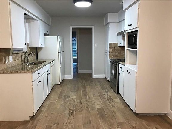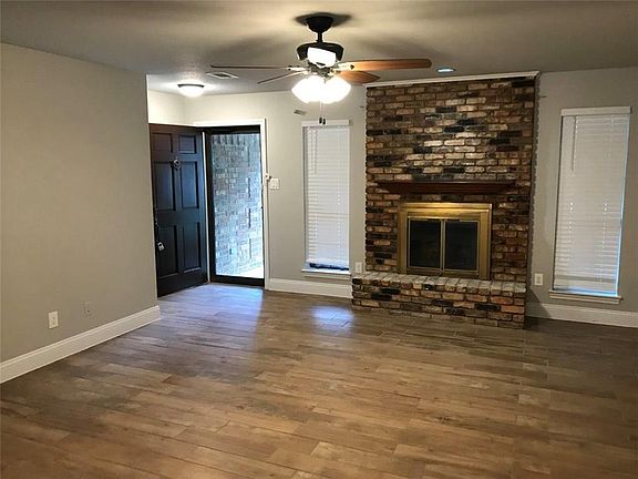 Excellent neighborhood for this complete remodel duplex featuring tile wood look flooring, updated HVAC, new lighting, SS microwave and electric range, granite countertops, new hardware, interior paint, new trim and more. Spacious family room with brick wood burning fireplace opens to breakfast room and kitchen. The den over looks the fenced back yard and large patio. Master suite has two closets and one is a large walk in. 2nd bedroom is same size as master and adjacent to the remodeled hall bath. Home includes refrigerator in kitchen and full size freezer in oversized garage with garage door opener and the utility closet includes a stack washer Dryer. Side entry garage, quiet cul de sac in Ridglea CC Estates.