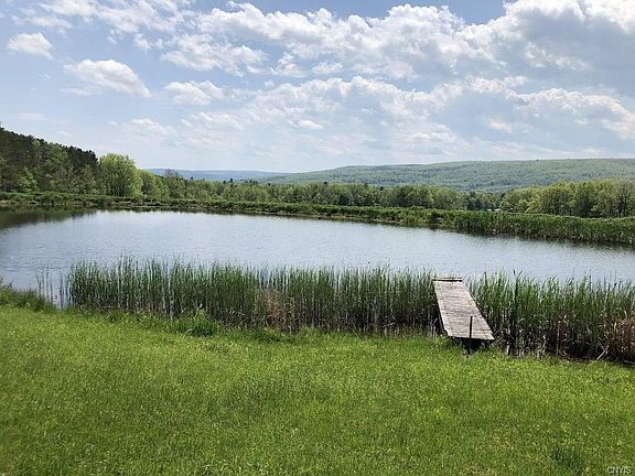 This property is currently used as a seasonal residence but is suitable for full-time residence. The home includes 2 bedrooms, 1 full bathroom, kitchen, living room with a nice fireplace, and a large additional room on the back of the home for a possible bedroom or office. Enjoy the screened-in porch that runs the full length of the house and overlooks the large spring-fed, stocked pond. Miles and miles of panoramic views! There is a detached garage with a concrete floor and electric. The 32 acres consist of a large hay field perfect for livestock, and woodlands that are mostly softwoods with a mixture of hardwoods. Amazing hunting! Lots of whitetail deer signs. Great property for large family get-togethers, or for your own private get-away.