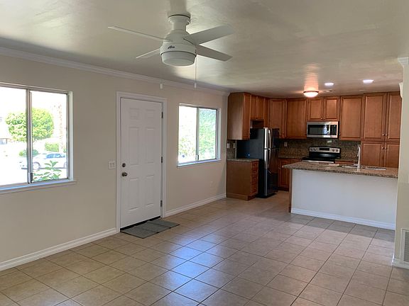 Freshly painted home with brand new appliances: Refrigerator, Electric Stove/Oven, Microwave, and Dishwasher. Brand new bath/shower tub and tile, toilet, bathroom vanity sink, and medicine cabinet. Installed brand new bedroom and bathroom doors and installed new closet sliding doors. Installed new recessed lights in Kitchen and installed new fans with light in living room and both bedrooms. Brand new sliding windows in living room, kitchen, and bedrooms. There is one garage space available for the unit in shared garage. Private access to shared laundry room.