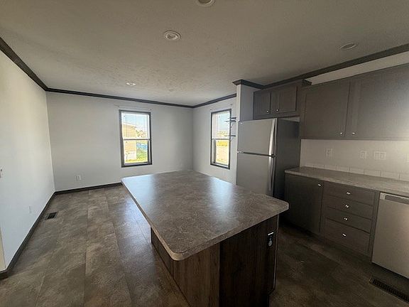 his charming 3-bedroom, 2-bathroom double-wide manufactured home effortlessly combines comfort and style. Step inside to discover an inviting open-concept layout featuring a spacious island kitchen that's perfect for entertaining or family gatherings. The well-lit living area flows seamlessly into the dining space, creating a warm atmosphere for everyday living.