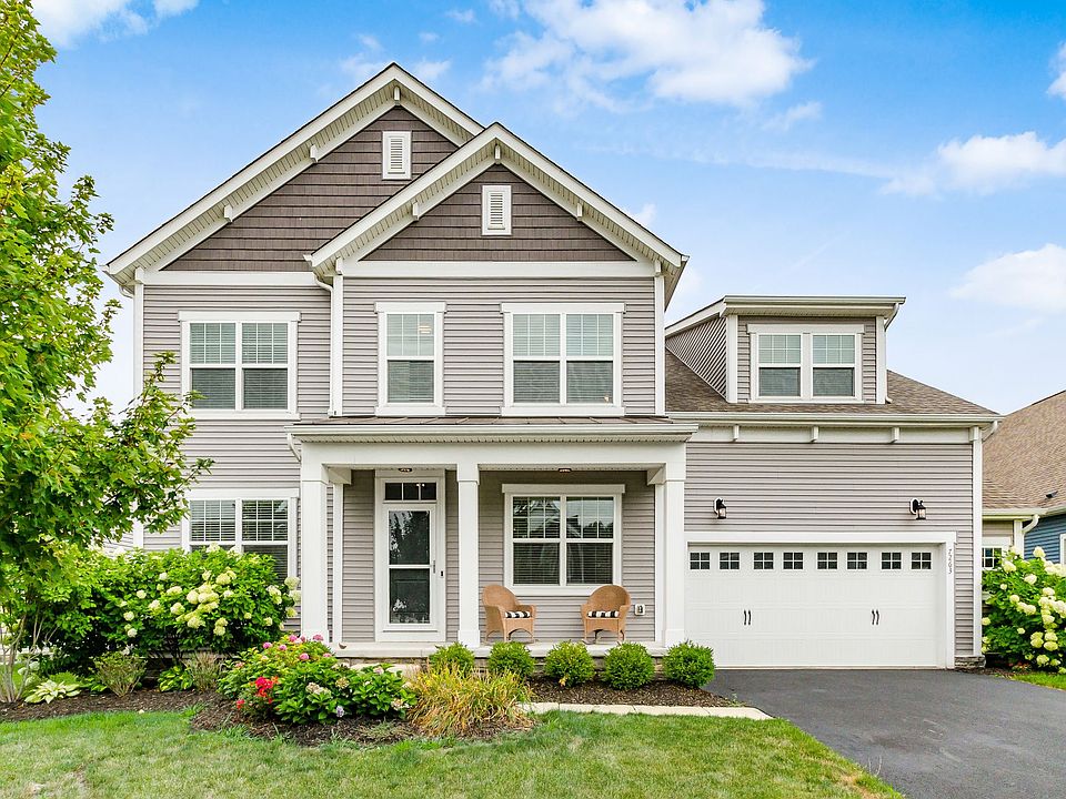 Welcome to this elegant 5-bedroom home in the highly sought-after Jerome Village community, offering 3,695 sq ft of living space in the Dublin School District. The bright, south-facing great room boasts soaring ceilings and expansive windows that fill the home with natural light. The open-concept design flows seamlessly into a gourmet kitchen with granite island, walk-in butler's pantry, and abundant storage, plus a formal dining room ideal for entertaining. A private study provides the perfect work-from-home space. Upstairs, the luxurious primary suite features a spacious walk-in closet and spa-like bath, while the additional bedrooms are generously sized for family or guests. The full basement is ready to finish for even more living space. Enjoy a 2-car garage and access to Jerome Village amenities including clubhouse, fitness center, pools, trails, and community events. A perfect balance of style, comfort, and convenience awaits!