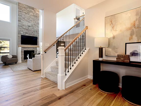 Central stone fireplaceTimeless and modern finishesFlex spaceLake and walking pathMaster suitePrivacy aboundsHome office
