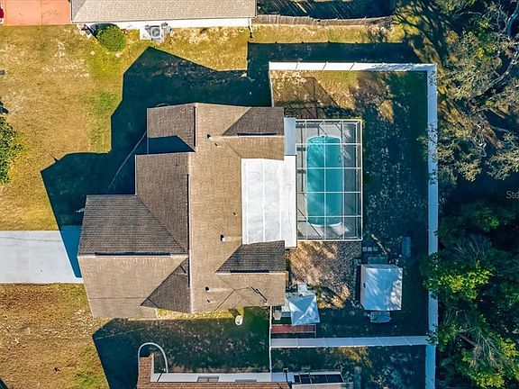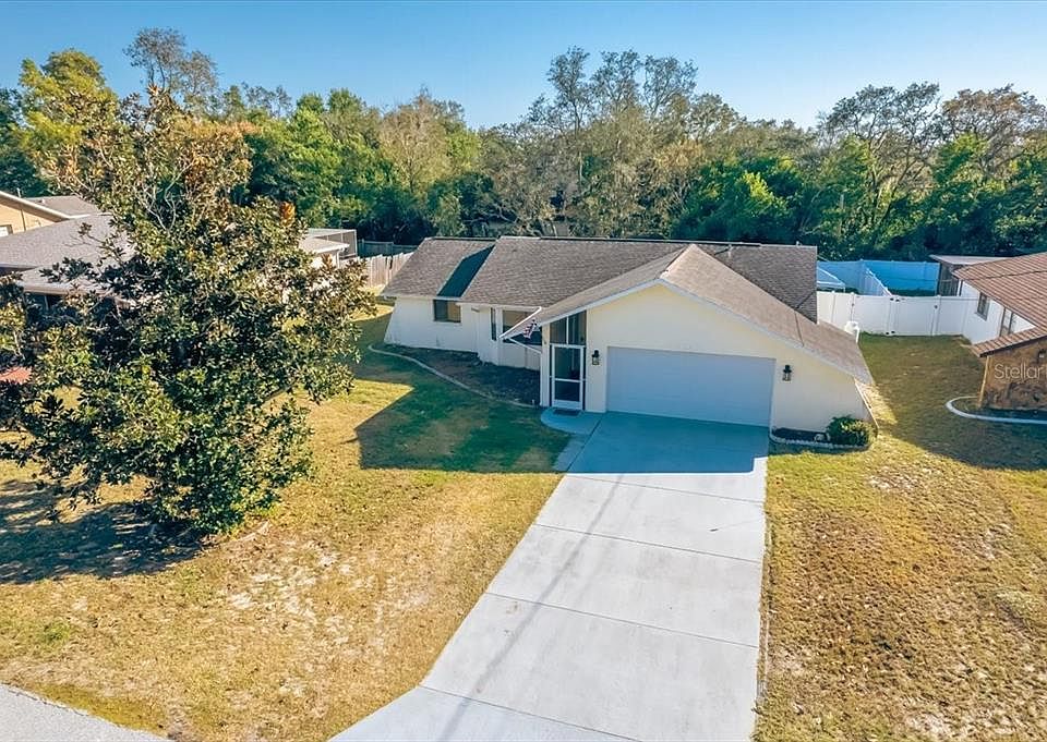 Well maintained 3 bedroom, 2 bathroom pool home with an oversized 2 car garage in Spring Hill. A screened and covered entry leads to the front door,, wood laminate flooring sets the tone for the living and dining room combo. The kitchen was updated in 2021 with new granite countertops, stainless steel appliances, a tile backsplash, and a generous breakfast bar. The home features vaulted ceilings and a split bedroom layout. French style sliding glass doors open from the main living area to the enclosed vinyl patio. Its sliding vinyl and screened panels open fully to the screened pool and patio, which then flows to a large open patio. The home also offers plant shelving, interior paneled doors, ceiling fans , laundry area is in the garage and includes a utility sink. There is also an outdoor shed for extra storage. Recent updates include granite countertops throughout in 2021, a vinyl privacy fence in 2021, and a new HVAC system in 2019. The roof was replaced in 2012, New Bathrooms 2025 Call today to see this home before it’s gone!