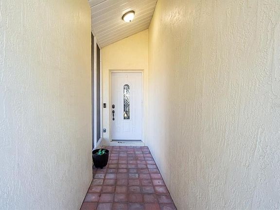 Vinyl privacy fenceCeiling fansVaulted ceilingsScreened and covered entryGenerous breakfast barLarge open patioSplit bedroom layout