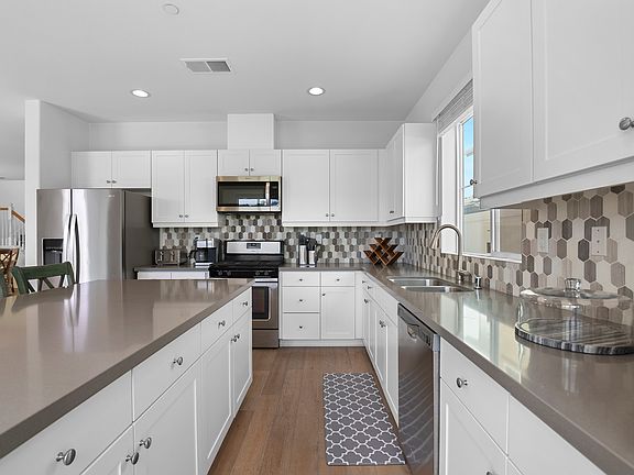 Built in 2019 and fully furnished, this 4 bedroom, 4 bathroom suburban home has all you need (including bathroom and kitchen essentials) for a vacation or for temporary relocation. This home is just a short drive to The San Diego Zoo, SeaWorld, The Del Mar Fairgrounds and Raceway, Downtown San Diego, and lots of other shopping and dining options. The large chef's kitchen is fully equipped with premium appliances, and a 6-seat dining room table that makes serving meals a breeze. After meals the family can flow effortlessly into the luxurious backyard, which features an outdoor dining area and a BBQ. One bedroom and full bathroom is on the main level; the other rooms are located on the upper level. The loft at the top of the stairs has a dedicated workspace. The attached garage fits 2 cars, the oversized driveway fits 2 more, and there is available street parking in the quiet cul-de-sac. This is the perfect hub for a family looking to take a break from the hustle and bustle or for temporary relocation. Let us help make your San Diego vacation one to remember!