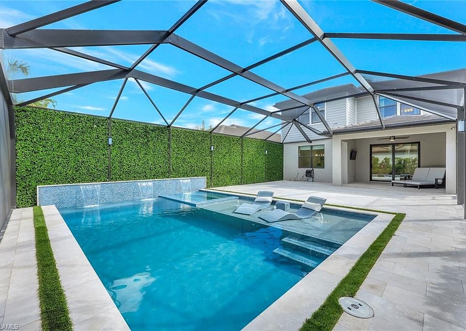 Exquisite Naples Retreat in Avery Square Welcome to this stunning 4 Bedroom + Den/Office, 3.5 Bath home where timeless elegance meets modern luxury. Perfectly positioned in the heart of Naples, this residence offers quick access to the beach, fine dining, and premier shopping. Enjoy your newly added resort-style heated saltwater pool and spa, complete with marble decking, water features, oversized sun shelf, and panoramic screen. The lanai features programmable color-changing lighting, controlled by remote for the perfect evening ambiance, while a separate landscape lighting system beautifully illuminates the exterior grounds—both systems automatically turn on at night. Artificial greenery walls provide privacy, and underground drainage has been added to the pool deck and gutters to divert water directly to the lake, ensuring a dry, pristine outdoor area. The expansive lanai and pool area are ideal for entertaining family and friends. This home includes a whole-house generator for peace of mind during hurricane season and an upgraded mesh Wi-Fi system with boosters throughout. The sought-after Driftwood floor plan features impact-resistant glass windows and doors, a spacious great room, and a chef’s kitchen with soft-close cabinetry, quartz countertops, expanded island, stainless steel appliances, and gas cooking. The large dining area and powder room complete the first floor, while sliding glass doors open to the extended covered lanai. Upstairs, the luxurious primary suite boasts a tray ceiling with LED lighting, double vanity with quartz countertops, frameless glass shower, and custom walk-in closet. Three additional bedrooms and two full baths (one en-suite) provide space for family and guests. A versatile main-level den/flex room can serve as a fifth bedroom or office. Additional highlights include a two-car garage with a 4' extension, new epoxy flooring, and overhead storage racks, paver driveway, and a gated entrance off Airport-Pulling Rd., just south of Vanderbilt Beach Rd. — minutes from everything Naples has to offer.