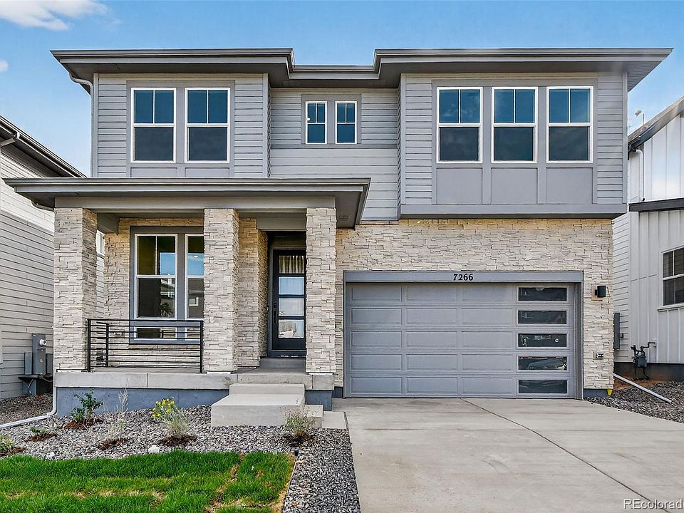 What's special: 2-Story Great Room with Fireplace | Covered Patio | Gourmet Kitchen. New Construction - Ready Now! Built by America's Most Trusted Homebuilder. Welcome to the Ridgway at 7266 Goldbloom Lane in Sterling Ranch Ascent Village. Contemporary design and thoughtful spaces make the Ridgway a favorite among families. The kitchen flows into the everyday dining area and features an eat-in island and a spacious walk-in pantry. A flexible front room offers space for a study, playroom, or creative retreat. Soaring ceilings in the great room create an open, airy feel perfect for gathering and relaxing. Upstairs, the private primary suite is joined by three additional bedrooms, while the unfinished basement adds room for storage, a home gym, or future expansion. Located in Sterling Ranch, this home includes smart-home features and access to scenic trails, pocket parks, and The Overlook Clubhouse. Additional Highlights Include: covered rear patio, 8' doors on main level, free standing tub and separate shower at primary bath, fireplace at great room, quartz countertops in kitchen and primary bath, hard surface floors on first level, iron railings on stairs, matte black fixtures throughout, gourmet kitchen with upgraded cabinets gas cooktop, vent hood, and built in oven and microwave. MLS#4972723