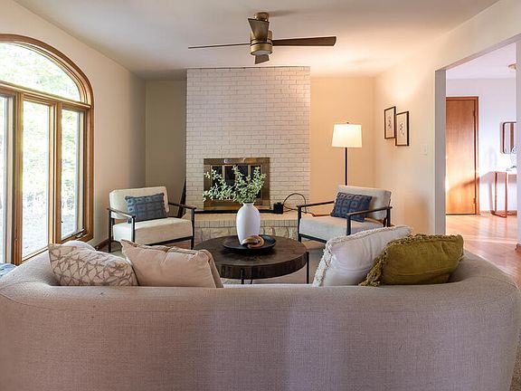 Cozy fireplaceUpdated fixturesLarge sunroomFresh paintBrand-new carpetSpacious kitchenRolling property