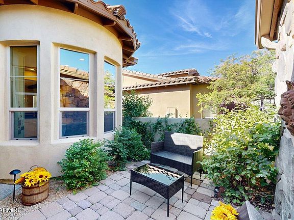 Fully remodeled stunning townhome in the gated N. Scottsdale community of Solstice, a charming courtyard welcomes you to custom beveled glass entry door, tastefully appointed kitchen with gas cooktop, drop-down hood, stainless steel appliances, subway tile backsplash, and quartz countertops, open floor plan, beautiful masonry work, floating mantel fireplace and beams in Great Room opens to covered patio lovely and professionally landscaped desert private backyard with pavers, designated sitting areas perfect for tranquil nights or entertaining, remodeled bathrooms with extensive tile work, new faucets, sink, new flooring throughout, plantation shutters, utility sink in the laundry room, new A/C, and water heater in 2020, Epoxy floor garage with floor to ceiling storage cabinets, water softener, and whole house filtration system. Community pool, spa, BBQ area, and dog park. Close to shopping, dining, and hiking. Must see this won't last long!