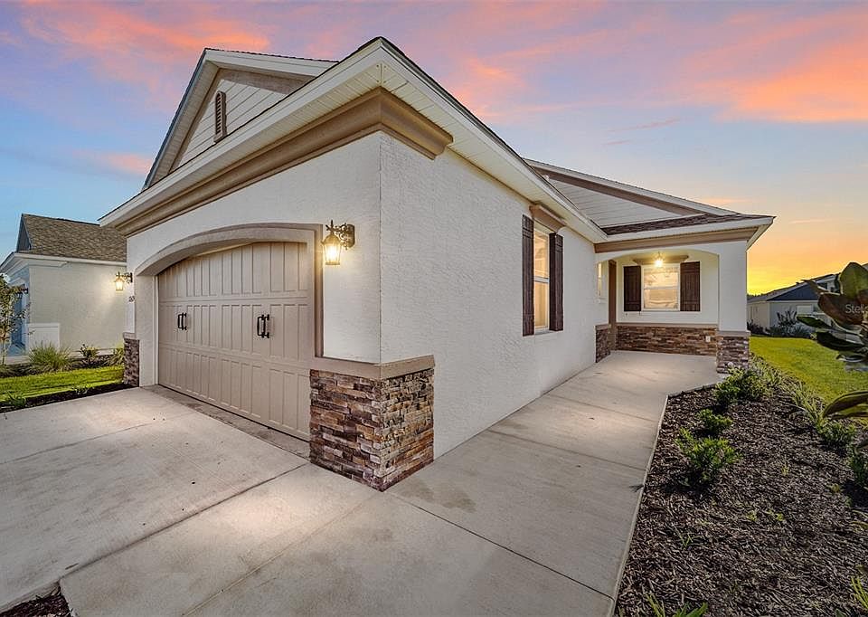 Beautiful Terra Model in Weybourne Landing This 2-bedroom, 2-bath home with a flex room featuring French doors offers over 1,400 sq. ft. of living space with tile flooring throughout. The open living area is bright and inviting and features a sliding glass door leading to the screened lanai, perfect for indoor-outdoor living. The gourmet kitchen showcases staggered cabinets with crown molding, stainless steel appliances, under-cabinet lighting, quartz countertops, and a pantry—ideal for both everyday cooking and entertaining. The owner’s suite includes a walk-in closet and a luxurious en suite bath with dual vanity sinks, a walk-in tiled shower with a glass door and built-in bench, providing both comfort and style. A 2-car garage adds convenience and additional storage. Located in the desirable Weybourne Landing neighborhood at On Top of the World, residents enjoy world-class amenities, recreational facilities, golf courses, and a vibrant 55+ lifestyle community.
