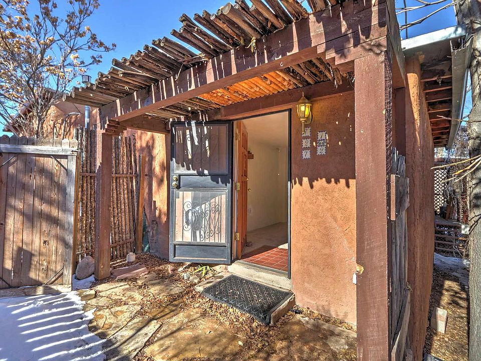 Classic Santa Fe appeal abounds in this perfectly private, adobe gem, nestled between desirable South Capitol and the historic Eastside. With covered portal, plaster walls, latilla-fenced private yard, off street parking, stackable washer/dryer - this quiet, affordable pied a terre or first-time homebuyer find. Although on wonderfully accessible and historic Old Santa Fe Trail, this casita enjoys the privacy of a remote location with a high fence and double-paned windows blocking noise.