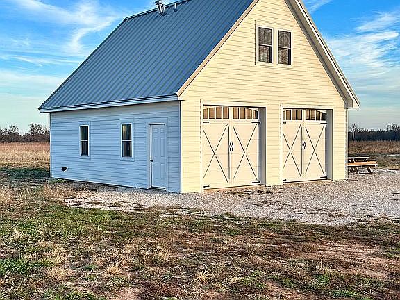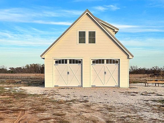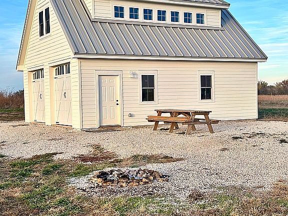 Welcome to your rural abode, where you can enjoy peace and serenity in wide open spaces! This thoughtfully curated property includes underground electric, fiber optic internet and large septic to accommodate your dream home. The 26’X30’ carriage style garage with 9’ overhead doors is designed to park a full sized pickup along with another 16’ vehicle. The building is insulated throughout, includes washer and dryer hookup with proper venting, utility sink, Navien tankless water heater and an additional 220 amp outlet. Upstairs the studio apartment boasts territorial views overlooking the one acre stocked pond. Upgraded amenities include LED lighting, Armstrong heat pump & A/C, Classic brand retro refrigerator and matching gas range, farmhouse plank accent wall, butcher block counter tops and traditional tile in the bathroom. The west facing double hung windows allow you to see the entire front of the property and view the notorious Kansas sunsets. With vast land surrounding and no direct neighbors, this 15 acre property is a wildlife refuge to massive whitetail, turkey, quail, geese, duck and dove. The pond was built in 2023 and stocked with bluegill and channel catfish, including albino cats. Make this your weekend getaway or your full time private paradise!