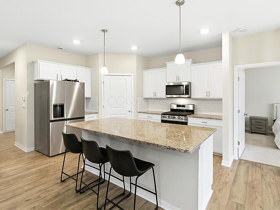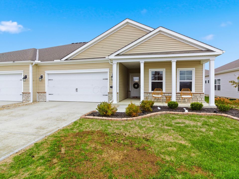 Welcome to Madison Meadows! Sun filled rooms, gleaming LVP flooring, and soaring ceilings! Newer construction, low-maintenance patio home with lawn care and landscaping provided for easy living! Kitchen boasts large eat-in island under pendent lighting, granite counterrops, subway tile backsplash & stainless steel appliances all overlooking the breakfast nook and spilling into the open & flowing oversized great room with direct vent fireplace, the perfect place to get cozy this winter! Step out back to your covered patio to enjoy your morning coffee or sit under the stars on a crisp fall night! Clean lines, well-appointed finishes, & a fantastic location in the award winning Jonathan Alder school district, your options for entertainment, food, and shopping are endless nearby while keeping the peace & quiet at home!