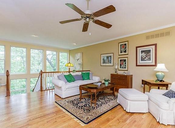 This 4 bedroom 3 bath atrium ranch is ready for its next owner. With vinyl siding and low maintenance landscaping, and a wooded lot, it will appeal to those who love nature, but still lead busy lives. It has wood floors in several rooms and tiled baths. The great room features a wall of windows overlooking nature at its best, and a see through fireplace shared with the kitchen. The lower level family room has a second fireplace, and the screened porch (with plexiglass inserts) features an electric fireplace, so this house is always cozy and warm. This is a house made for living and entertaining-there is formal dining, informal dining and a breakfast bar in the kitchen, as well as 3 different living areas. In addition there is a playroom/office and a room just made for those exercise machines. The list of updates added by the present owners is long, but includes newer AC, roof, screened porch, updated baths, dishwasher, crown molding and landscaping as well as a brand new deck floor.
