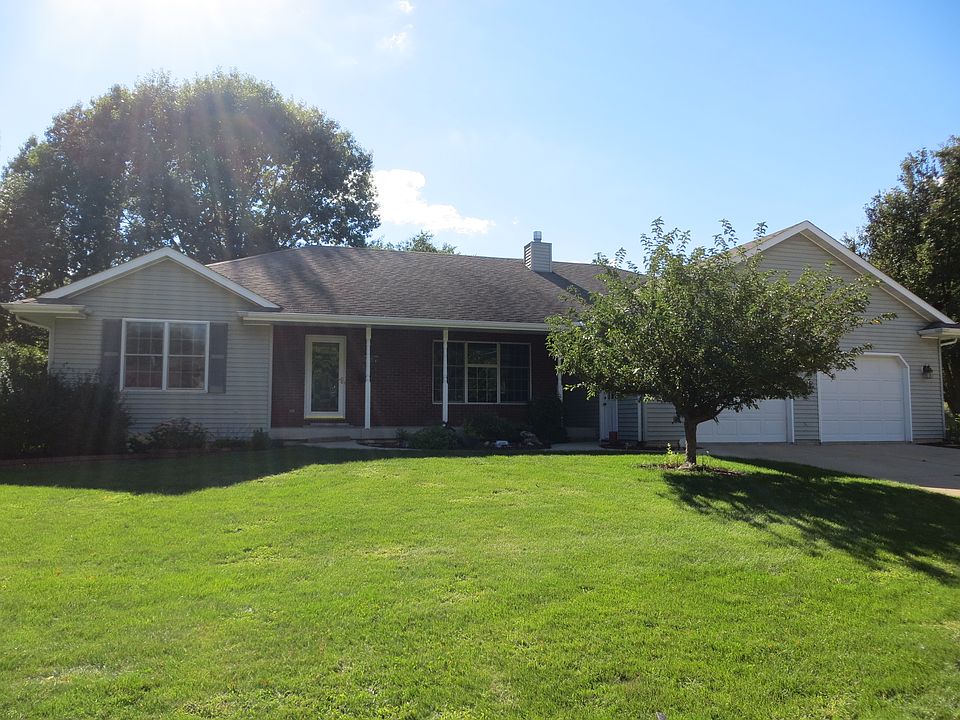 It is a quality built custom home. It is well designed, open floor plan, plastered walls, oak trim throughout house, first floor laundry, lovely four season room, brick gas fireplace, Pella windows, central vacuum, additional entrance to basement from garage, insulated garage, floor drains in garage, hot/cold water also in garage.