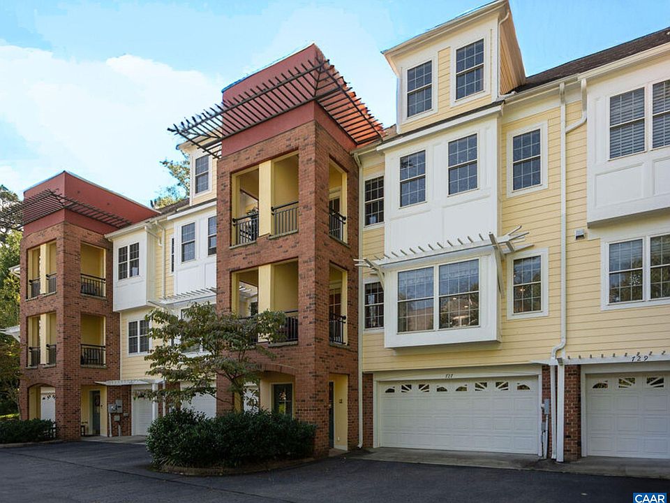 Don't miss this elegant, spacious townhome (with elevator) just minutes to UVa, near all of the conveniences just west of Grounds, but tucked away in a quiet, leafy neighborhood. This pristine 4 bedroom home offers high end finishes & gracious, well proportioned rooms. Enter into a lower level foyer, beside a 2 car garage & large storage/bonus room (currently used for exercise). On the second floor, find generous living & dining rooms, a large, upscale kitchen, powder room, hardwood floors, a two sided fireplace, a peaceful back patio & a front balcony. On floors 3 & 4 are the primary suite plus 3 other bedrooms & 2 more full bathrooms, another terrace, a laundry room and generous closet space. Don't miss the Blue Ridge view from the 4th floor front bedroom (currently used as an office). These views are more prominent in winter. The Rivanna Trail, restaurants, groceries, commuter routes are close by. Easy stroll to the JPJ, Scott Stadium, Grounds, restaurants & shops. This is low maintenance living at its best. HOA covers much exterior maintenance (except windows & doors). This home was just painted on the outside, and the inside (including the kitchen cabinetry) was painted in the last 5 years. See floorplans & features in docs.
