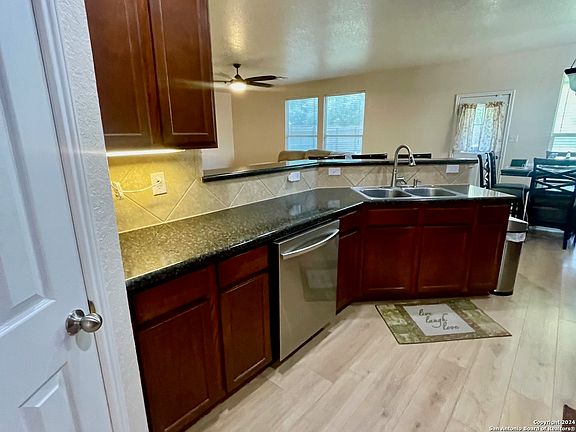 ---OPEN HOUSE THIS SUNDAY 12:00-2:00 (8/18)----This spacious home features a generous living area, a separate dining room, a breakfast bar, and versatile game room/flex room all under 9-ft ceilings. The property sits on a huge lot and boasts new flooring downstairs and fresh paint throughout. The plumbing has been completely redone and is prepped and ready for a water softener installation and the foundation has been repaired with a lifetime transferable warranty. The Amhurst community offers an abundance of outdoor amenities with a playground, swimming pool, basketball court, and a dog park.Its prime location offers easy access to Loop 1604 and is just 5 minutes away from numerous dining and shopping options. Additionally, it's less than 20 minutes from Lackland AFB and conveniently accessible to all other military bases.